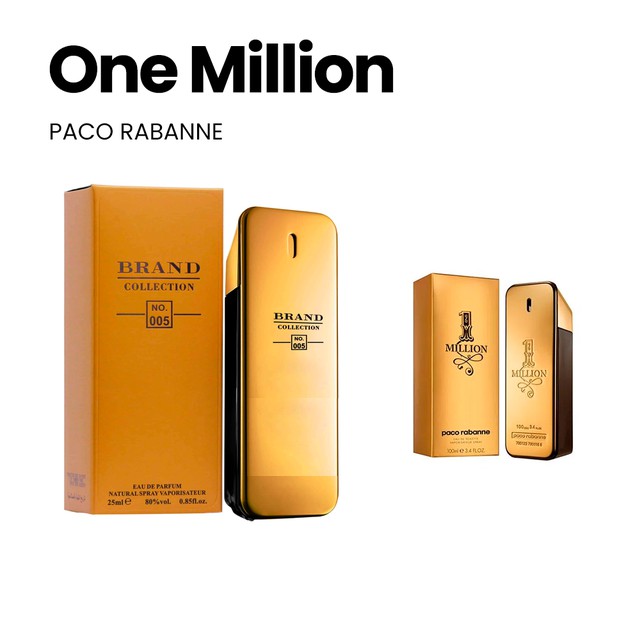 As notas de cabeça do perfume 1 Million iniciam com o frescor do pomelo, da menta picante e da mandarina, passando pelo coração que traz uma intensidade rara, composta de rosas, canela e acordes condimentados. Um contraste que mescla sensualidade refinada e virilidade afirmada. A composição se fecha com o toque do couro aveludado, madeiras brancas, âmbar e patchouli da Indonésia.