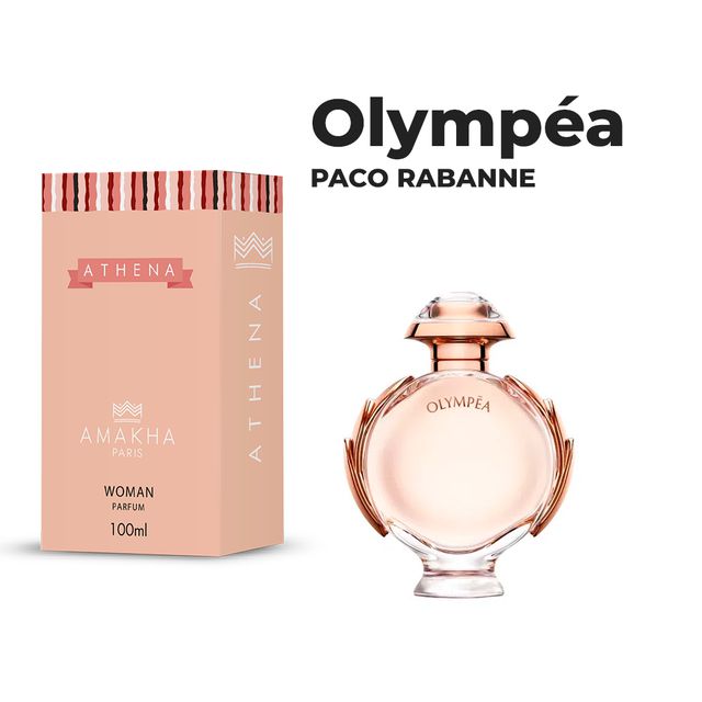 A fragrância feminina Athena é inspirada no Olympéa de Paco Rabanne. Esse perfume assim que foi lançado, já fez um sucesso estrondoso. Uma fragrância oriental floral fresca sofisticada que representa mulheres fortes, determinadas, sofisticadas, ousadas, charmosas e que sabem onde querem chegar.