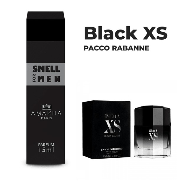 A fragrância masculina Smell For Men, inspirada no Black XS de Paco Rabanne, é uma fragrância livre, independente, extrovertido e sensual. O homem Black XS é "Bad Boy" com o coração terno, selvagem e dócil. É amadeirado e oriental, com notas de cabeça vibrantes e energéticas como o limão da Calábria e o Kalamanzi. Este perfume masculino combina uma personalidade profundamente sensível com uma natureza indomável.